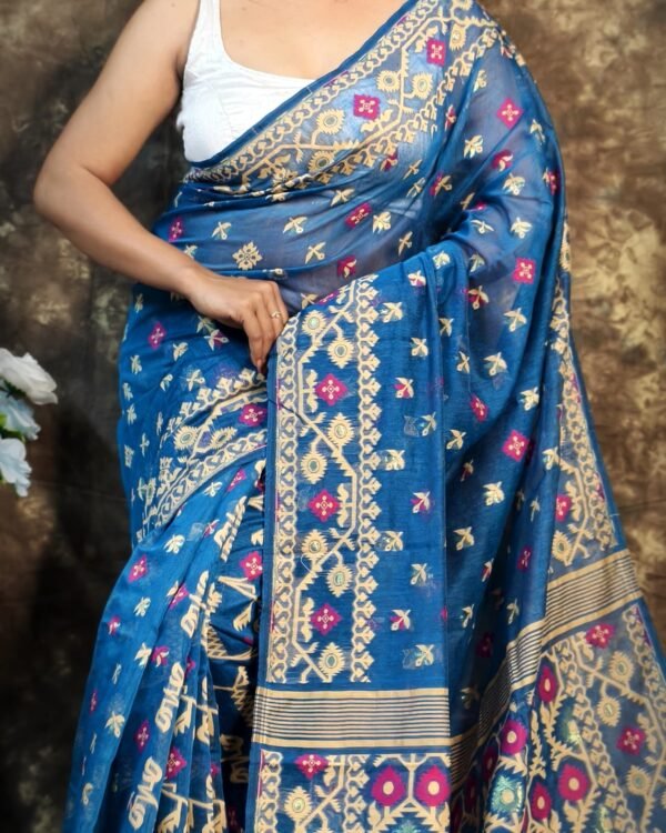 Navy Blue Soft Lata Dhakai Jamdani Sari
