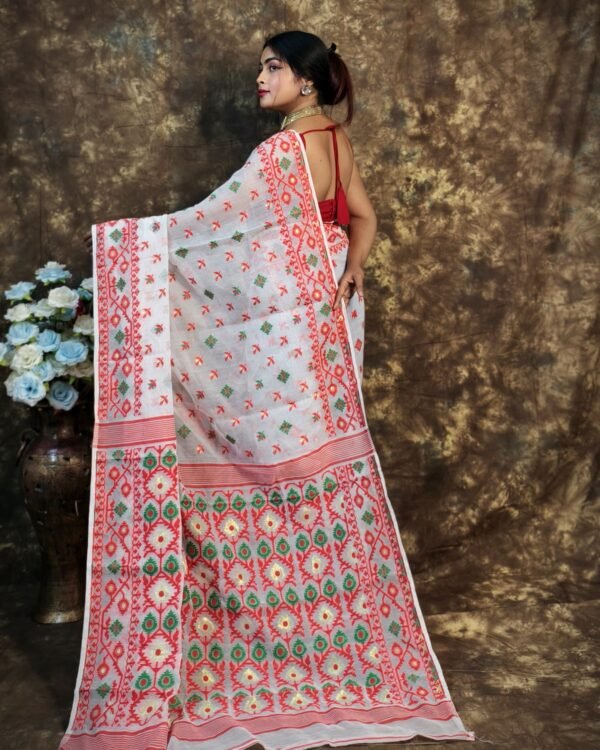 Cream Red Soft New Jhumko Dhakai Jamdani Saree