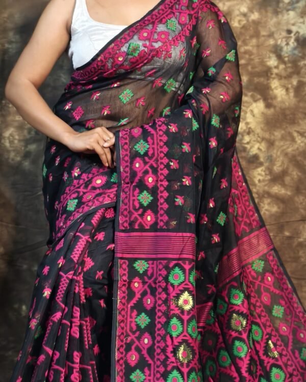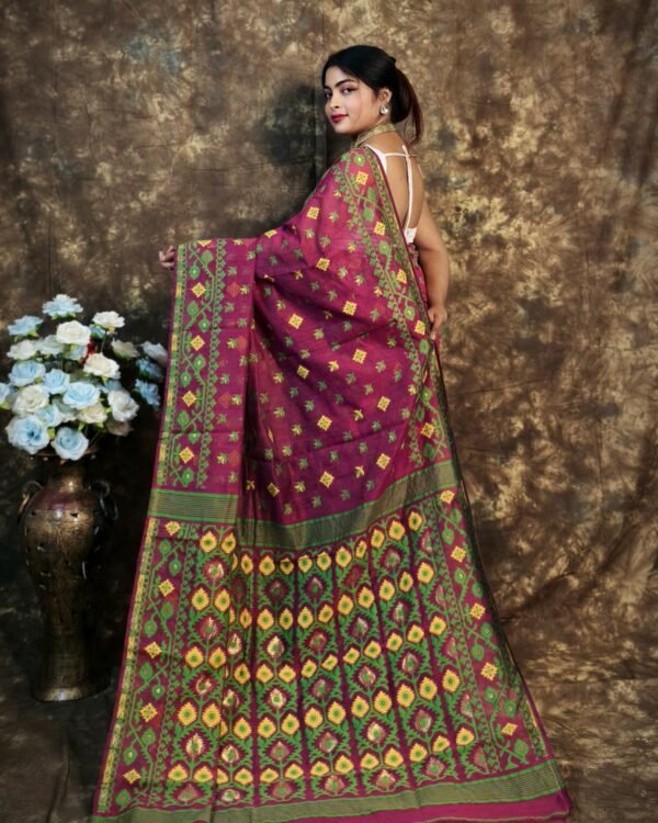 Deep Majenda Soft Lata Dhakai Jamdani Sari