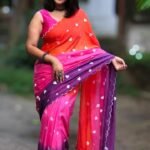 3D Mal Cotton Pink Orange Purple Soft Saree