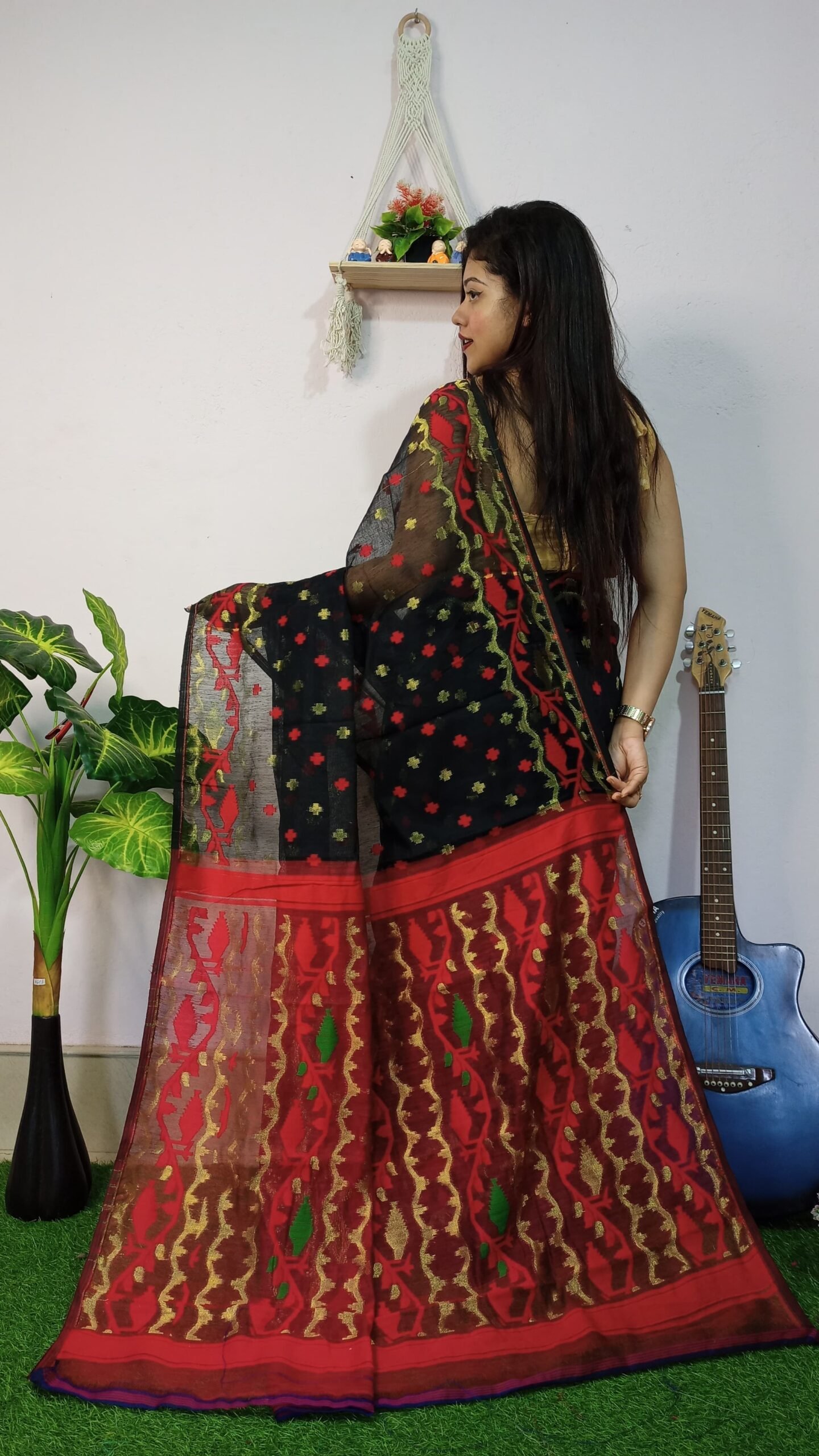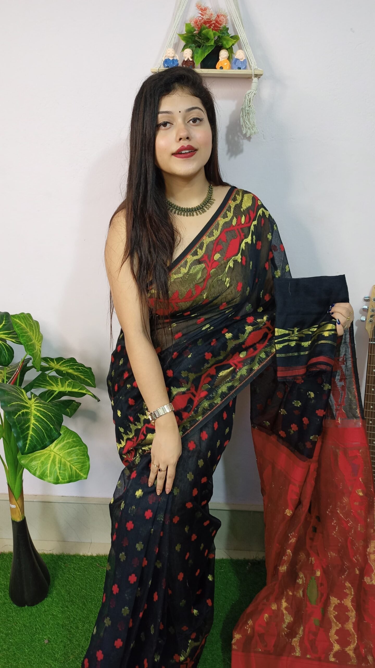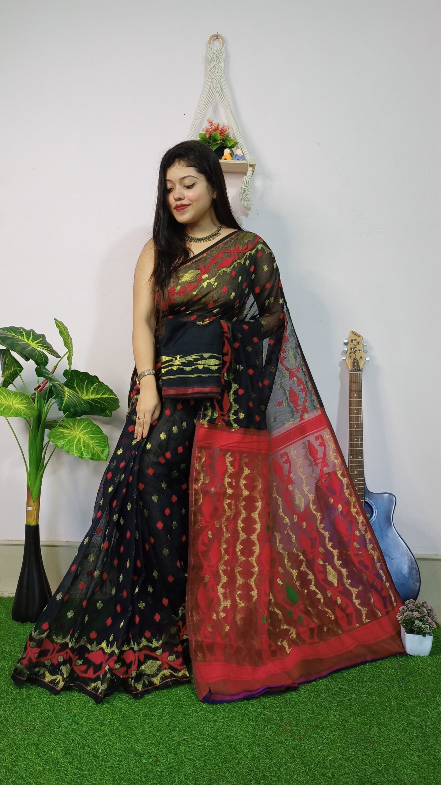 Be the first to review “Achol Jori Soft Black Red Jamdani Saree” Cancel reply
