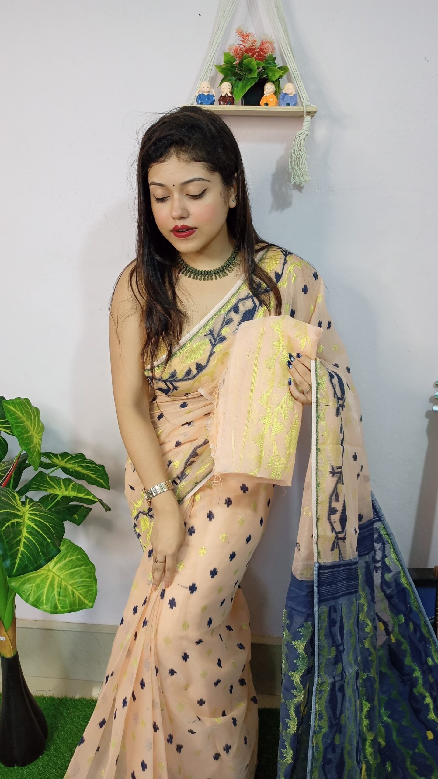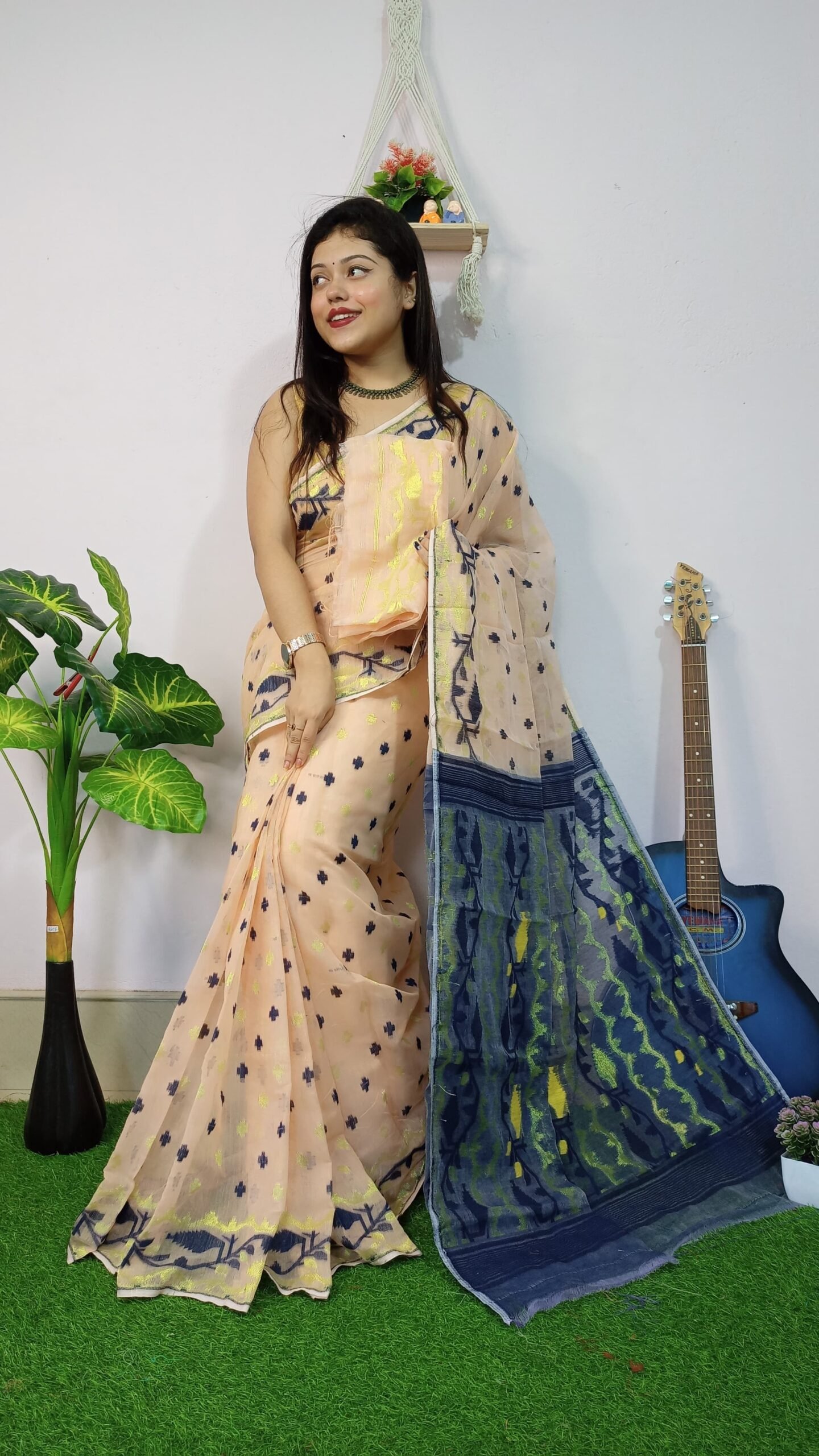 Excluclosive Banana Leve Borfi Design Jamdani Saree