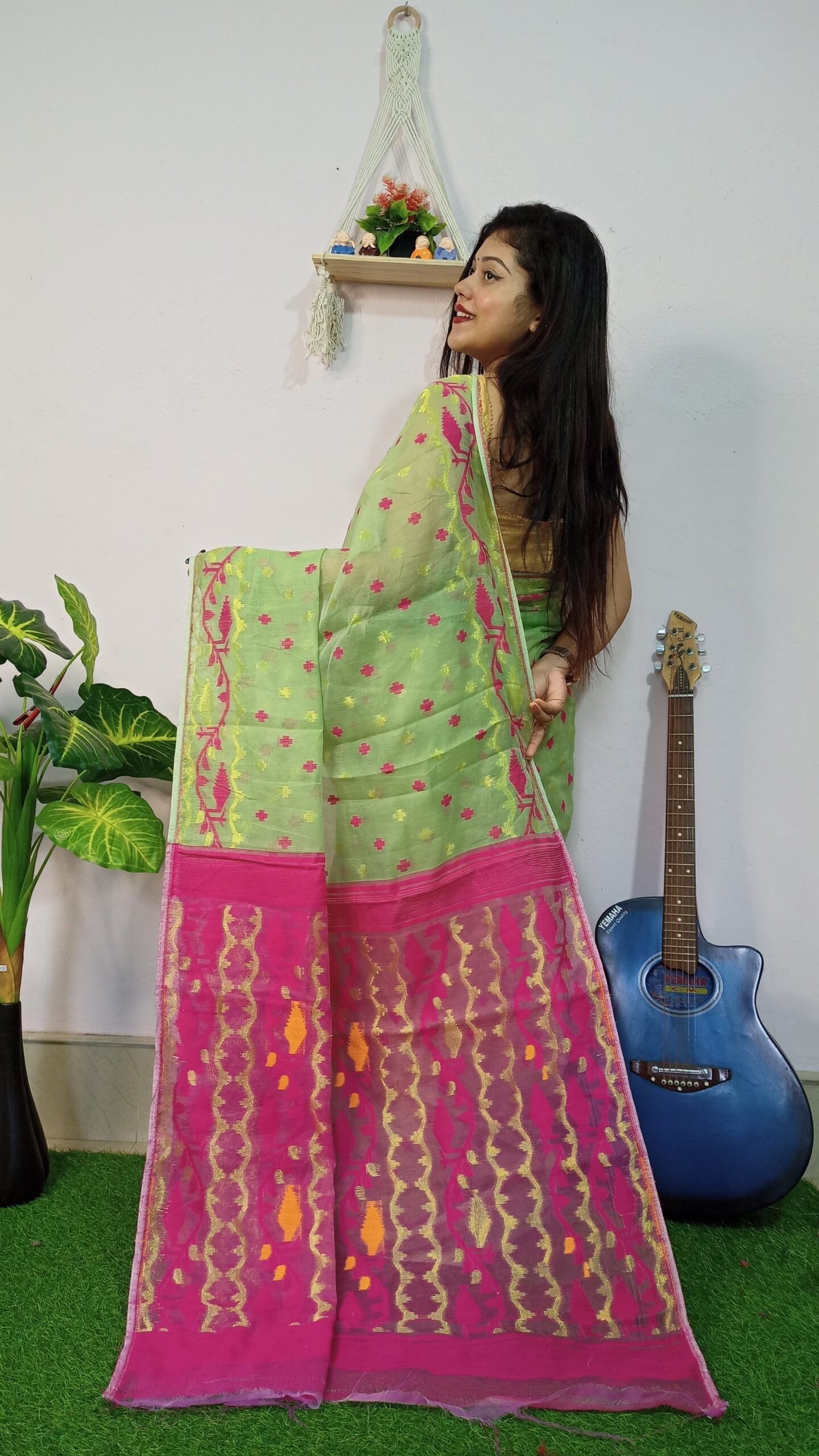 - Handle with Caution:Â While wearing the saree, handle it with care to avoid snagging or tearing the delicate fabric. Avoid contact with rough surfaces or sharp objects that may cause damage.