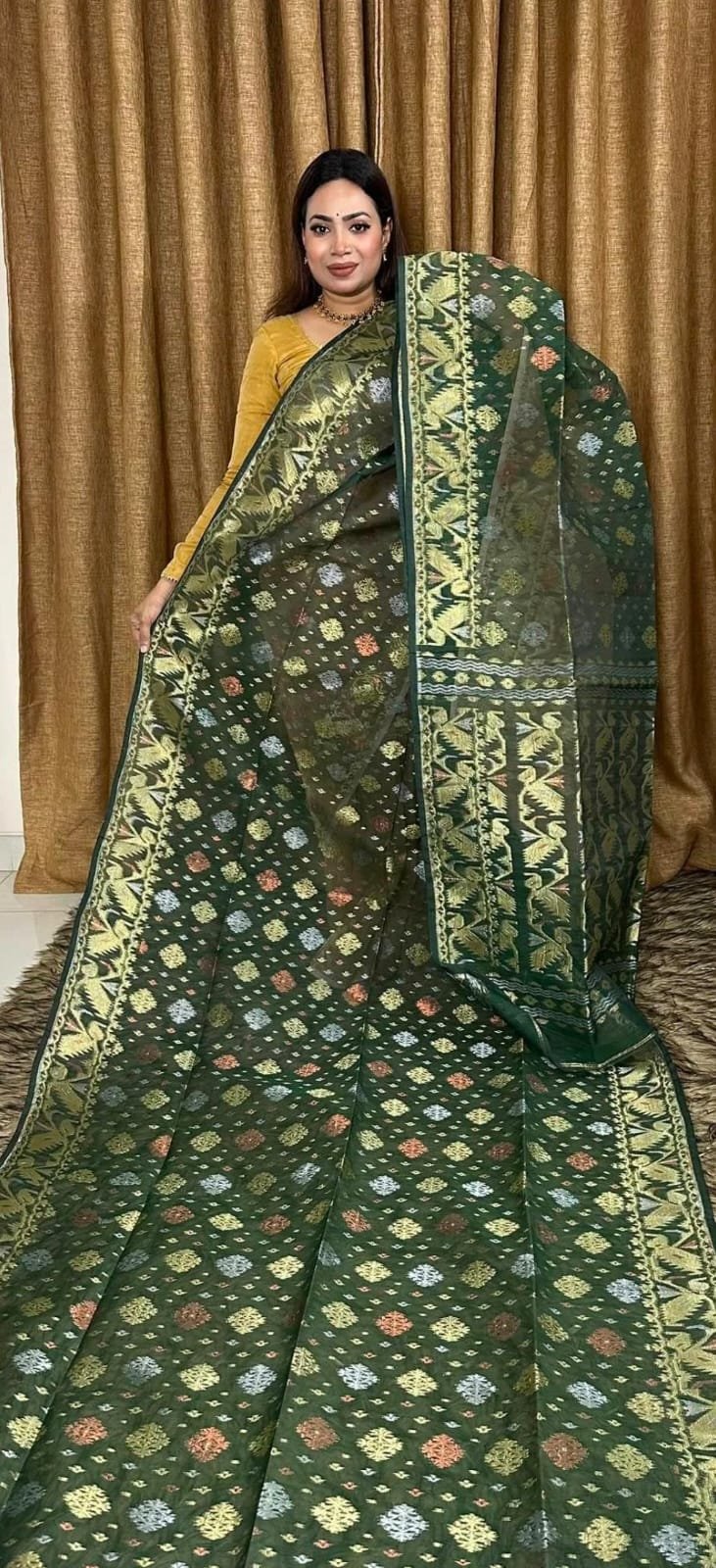 Be the first to review “Chakro Jori Soft Bottol Green Jamdani Saree” Cancel reply