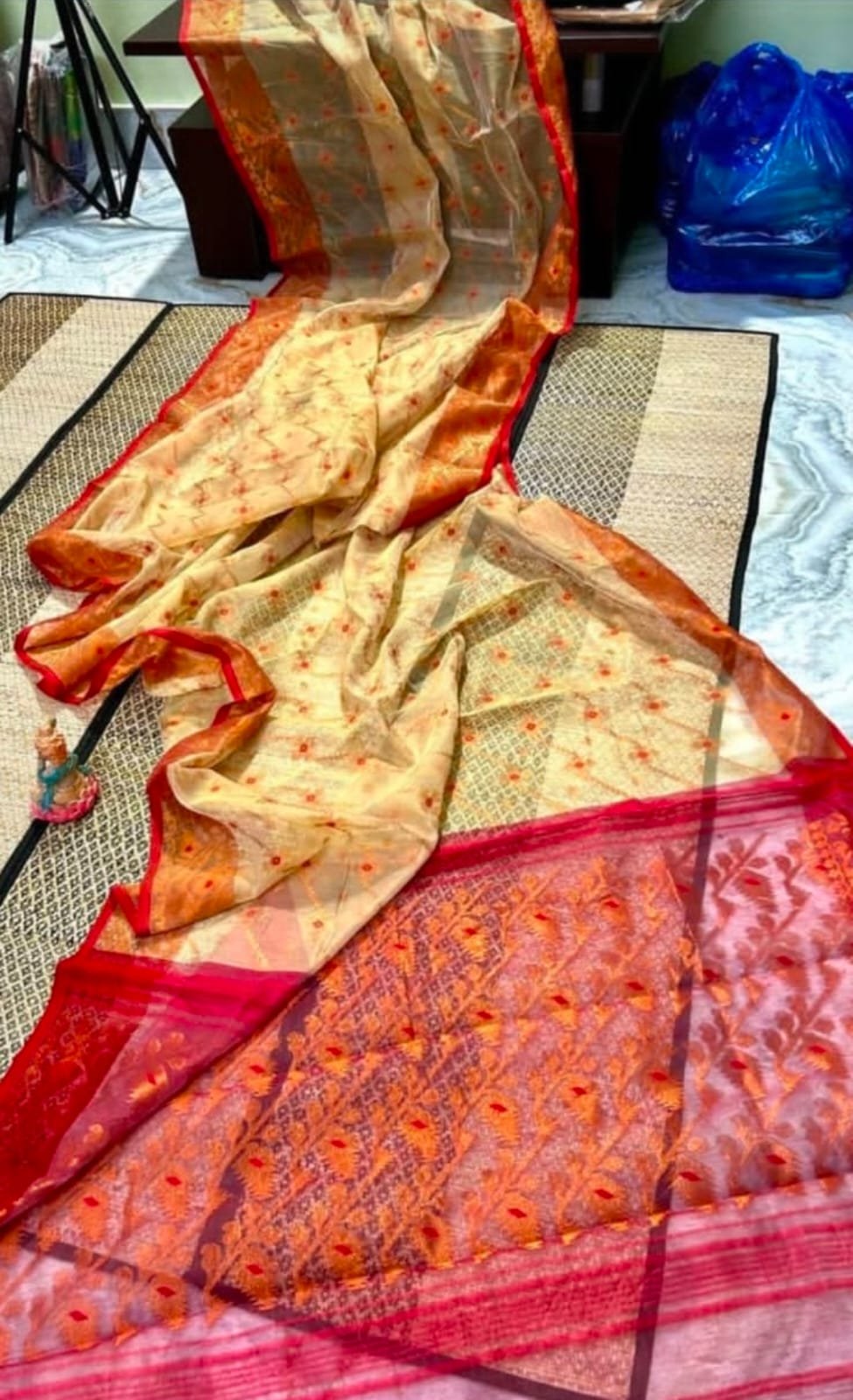 Jashmin Soft Cream Pink Jori Jamdani Saree