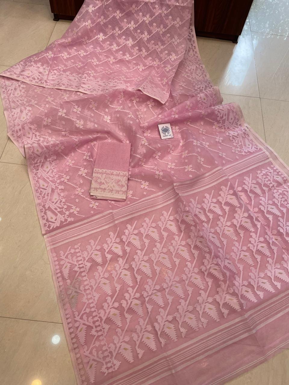 Exclusive Pink Swan Dhakai Jamdani Saree