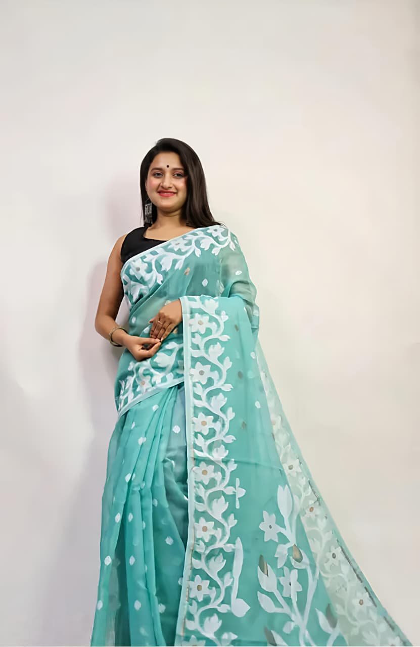 Exclusive Hippie Blue Dhakai Jamdani Sari