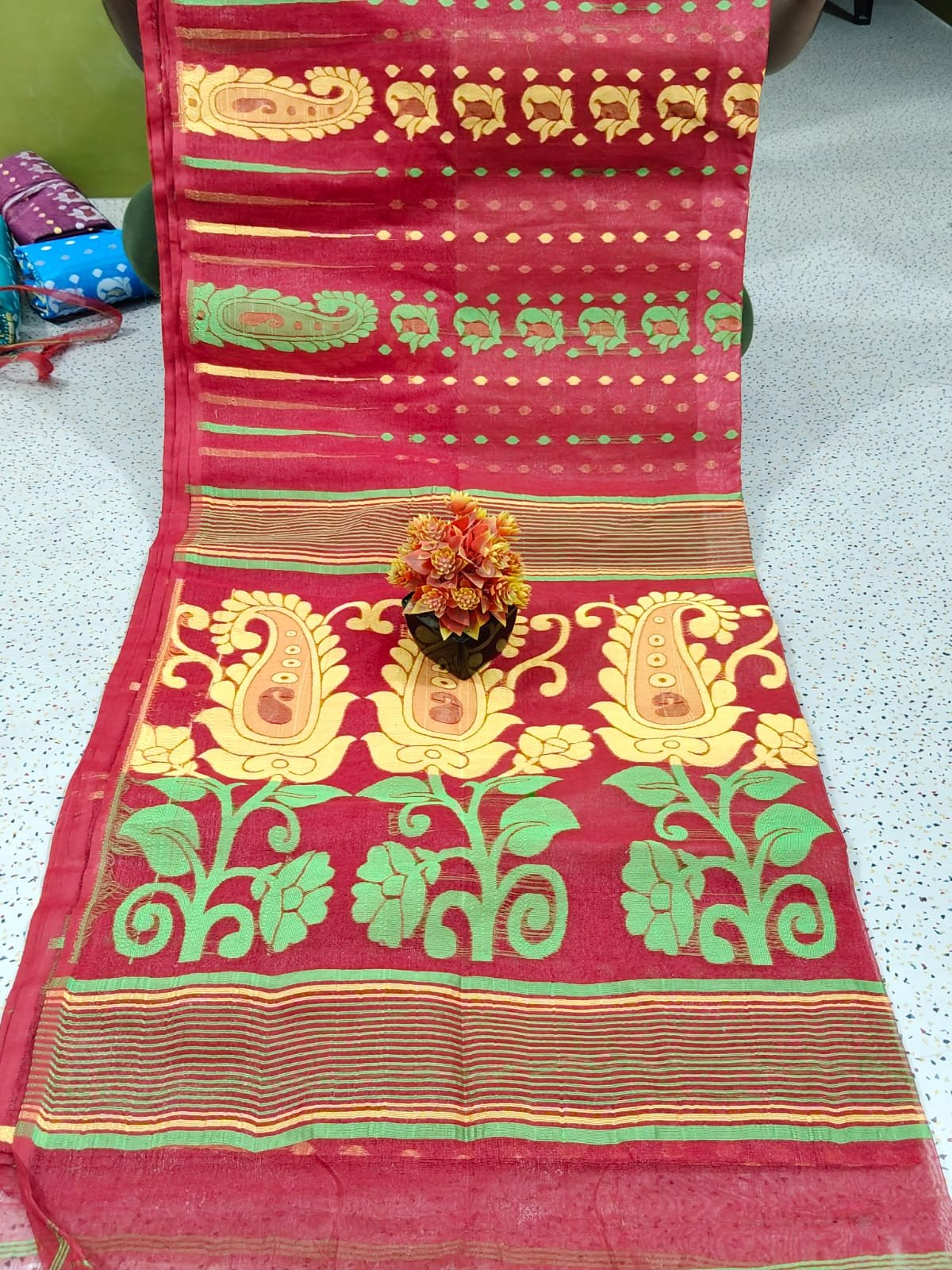 - Store with Care:Â When not in use, fold the saree neatly and store it in a breathable cotton bag or tissue paper to prevent any moisture build-up and protect it from dust and insects.