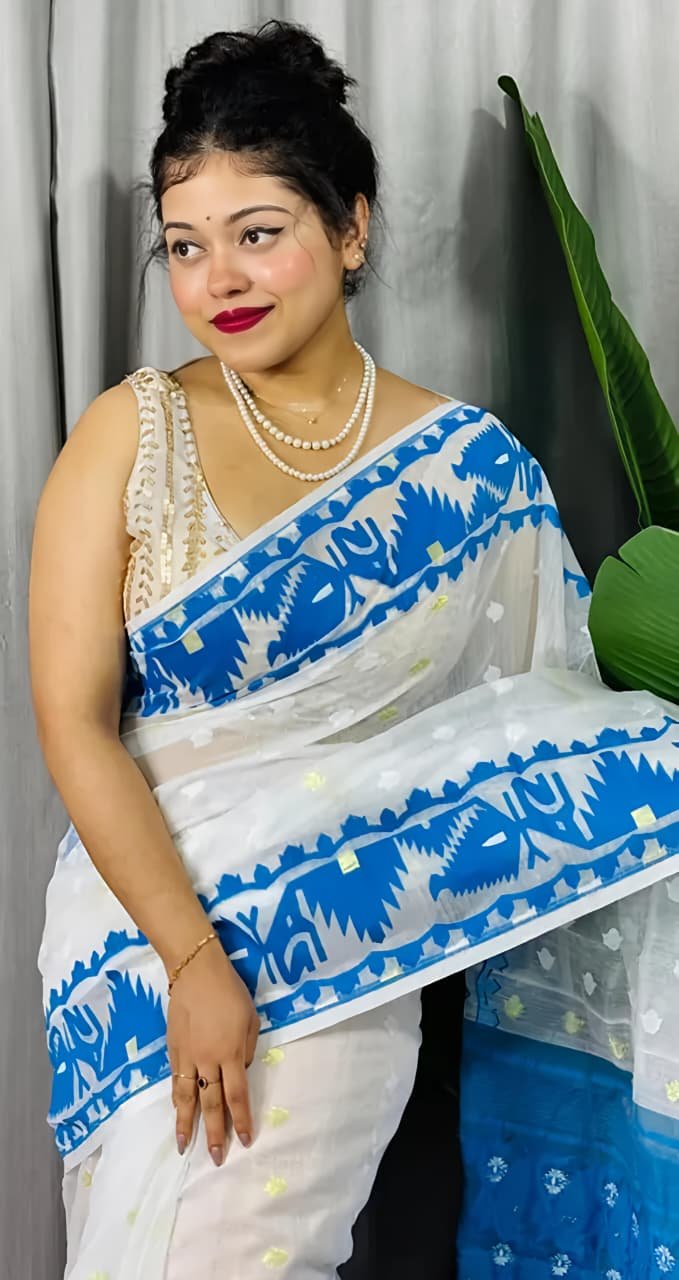 Be the first to review “Pradip Soft White Blue Jamdani Saree” Cancel reply
