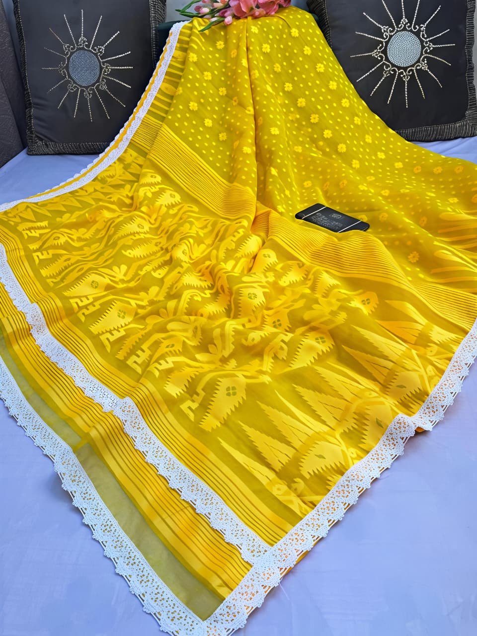 Excluclosive Banana Leve Borfi Design Jamdani Saree