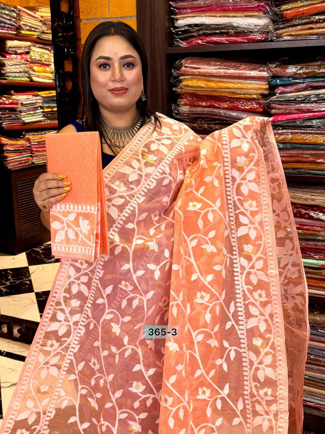 Be the first to review “Sarno Lata Soft Peach Jamdani Saree” Cancel reply