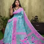Exclusive Dark Aqua Dhakai Jamdani Saree