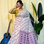 Chitrolota Soft White Purple Jamdani Saree