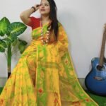Excluclosive Banana Leve Borfi Design Jamdani Saree
