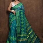 Exclusive Dark Aqua Dhakai Jamdani Saree