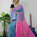 Exclusive Hippie Blue Dhakai Jamdani Sari