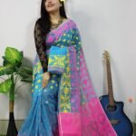 Exclusive Hippie Blue Dhakai Jamdani Sari