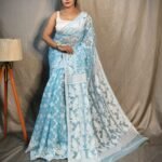 Exclusive Design Sky Blue Borfi Jamdani Saree