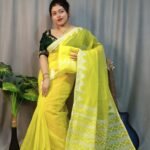 Nabonita Soft Lemmon Yellow Jamdani Saree