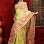 - Handle with Caution:Â While wearing the saree, handle it with care to avoid snagging or tearing the delicate fabric. Avoid contact with rough surfaces or sharp objects that may cause damage.