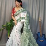 Tarongonila Soft White Pasta Jamdani Saree