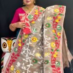 Exclusive Pale Silver Dhakai Jamdani Sari