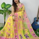 This exquisite saree combines the traditional artistry of Jamdani weaving with the unique Cross Lota design. Handloom crafted from soft cotton fabric, it’s perfect for special occasions or everyday wear. The 5.5-meter length ensures graceful draping, and the intricate handwoven patterns add a touch of elegance. Whether you’re attending a wedding, festival, or simply want to make a statement, this saree is a delightful choice!