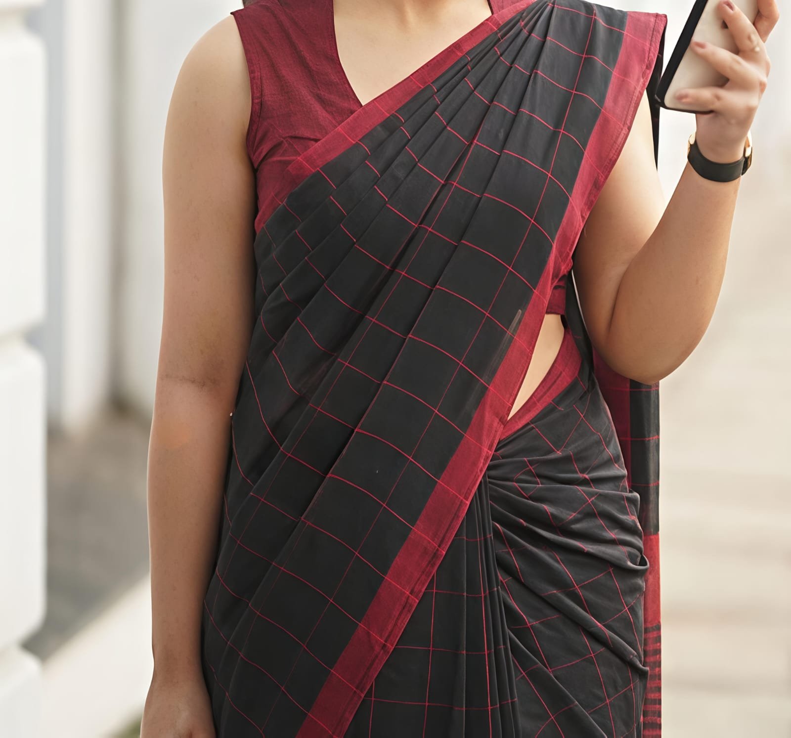 Be the first to review “Manjuri Chek Cotton Black Soft Saree” Cancel reply
