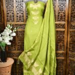 Money Planet Bottol Green Cotton Unstitched Jamdani Suit Set