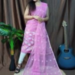 Four Leaf Pink Unstitched Jamdani Kurti Set