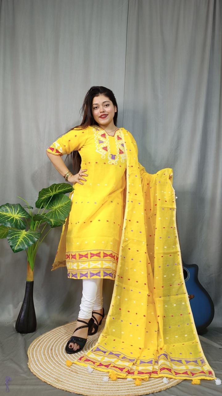 Lata Deep Rani Cotton Unstitched Jamdani Kurti Set